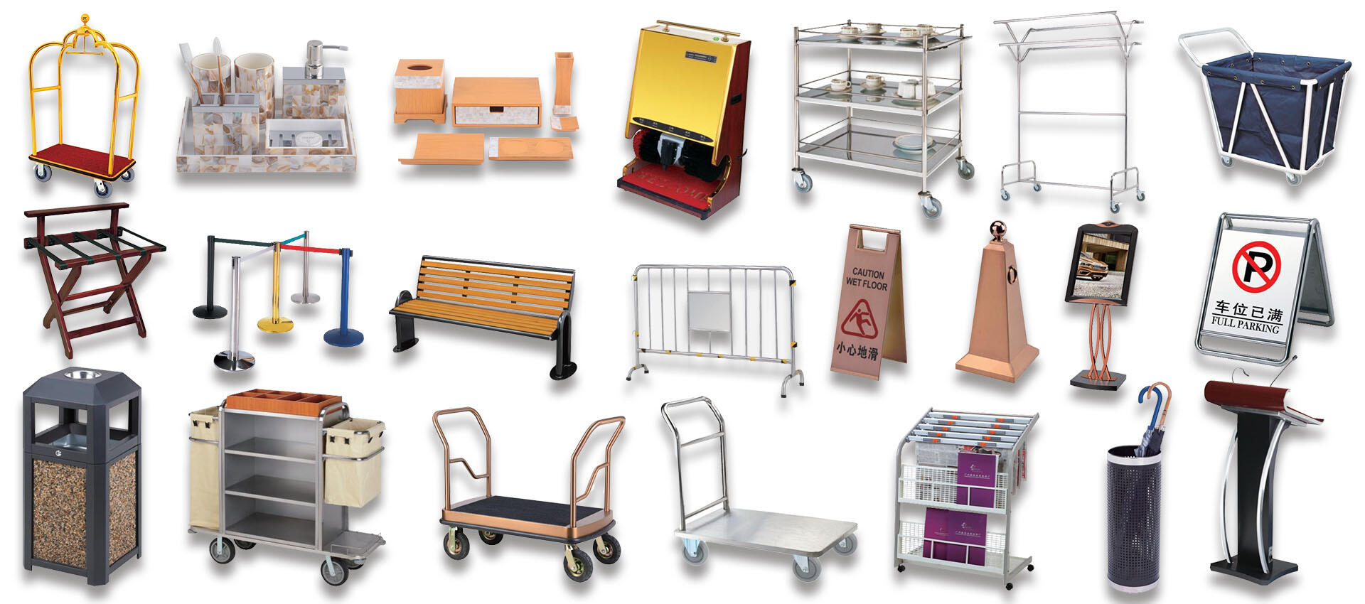Syvea Hotelsupplies Company is a professional manufacturer with 25 years of rich experience in the production, design and service of hotel supplies. Our main products include hotel luggage carts, luggage racks, ashtray trash cans, outdoor trash cans, indoor trash cans, lobby light boxes, signages, information racks, stanchions, wine trolleys, service trolleys, catering trolleys, outdoor seats and other hotel amenities. Boasting strong technical strength and advanced hardware machinery and equipment, we have established sound cooperative relationships with thousands of hotels and service providers worldwide. We sincerely invite you to join hands with us for a better future.